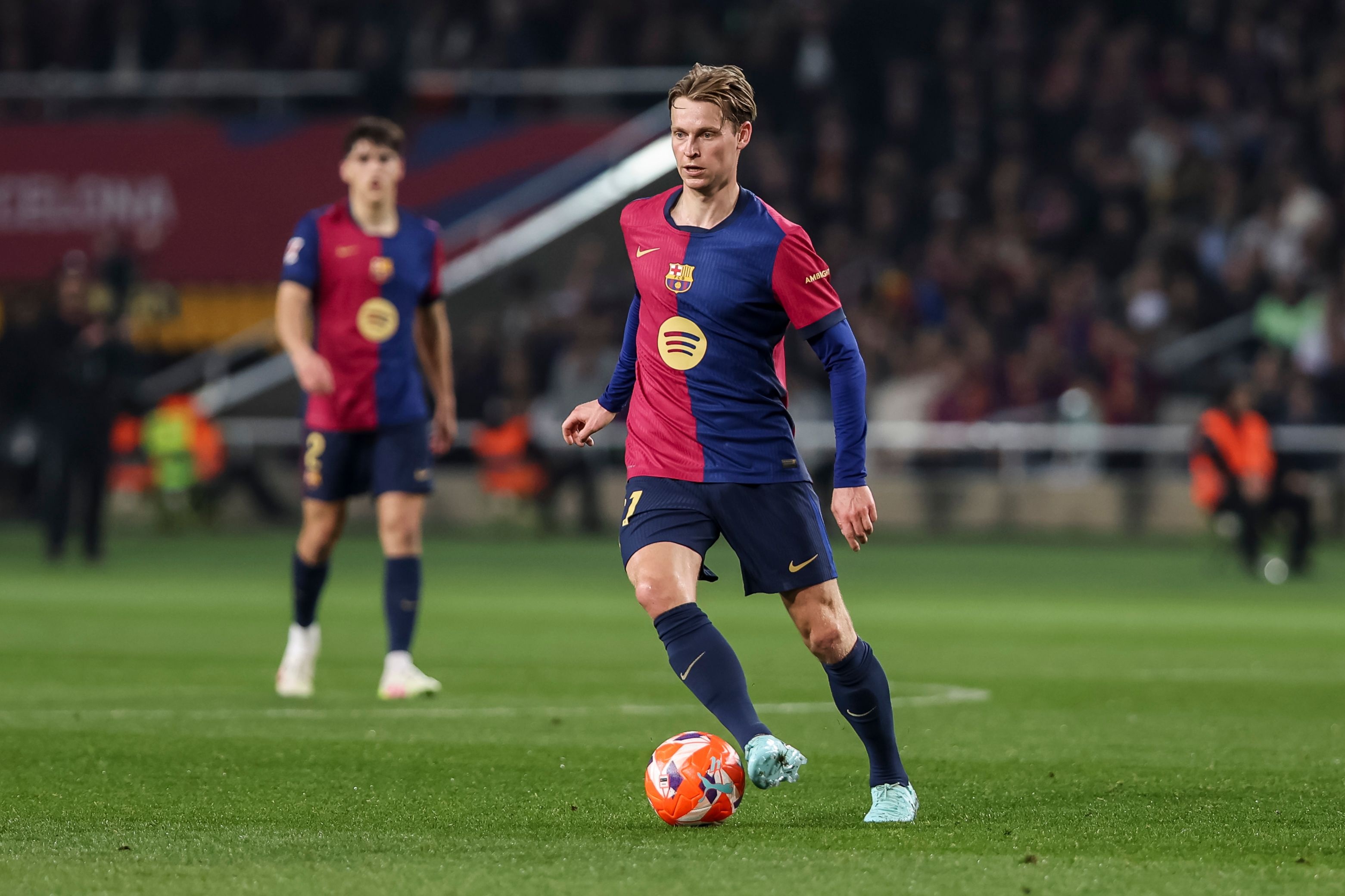 德容今天未参与球队合练,一切迹象表明他不会强行选择参加周末的比赛。德容此前在国家队遭遇右腿肌肉伤势,球队的目标是让他赶上下周与纽卡的欧冠比赛。